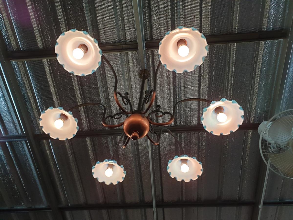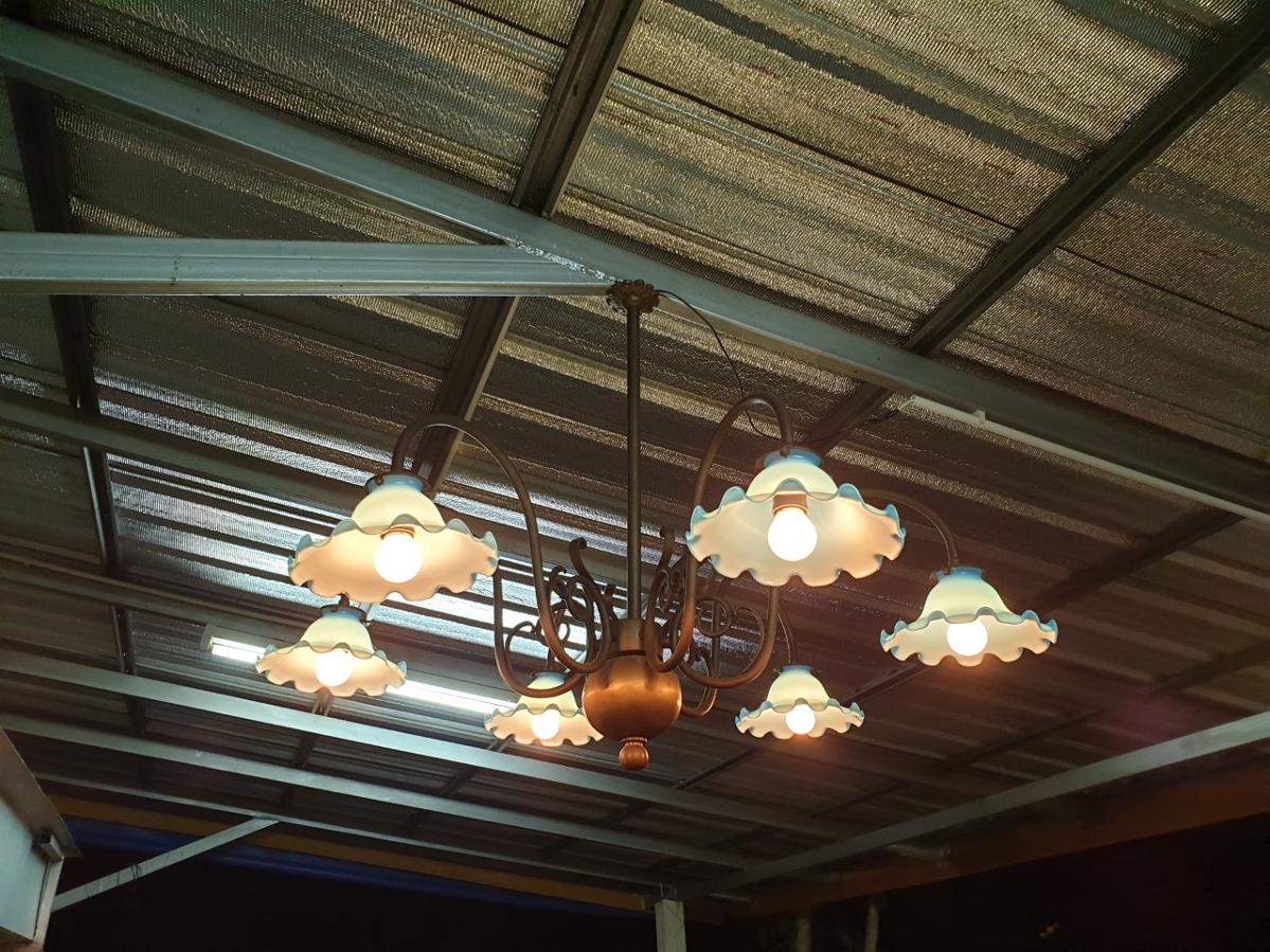โคมไฟห้อยเพดาน 6แขน งานทองเหลืองแก้วจีบโบราณสีฟ้า สนใจสินค้าโทรสอบถามได้ที่ 02 570 1987 sale 061 509 5337,084 850 6680